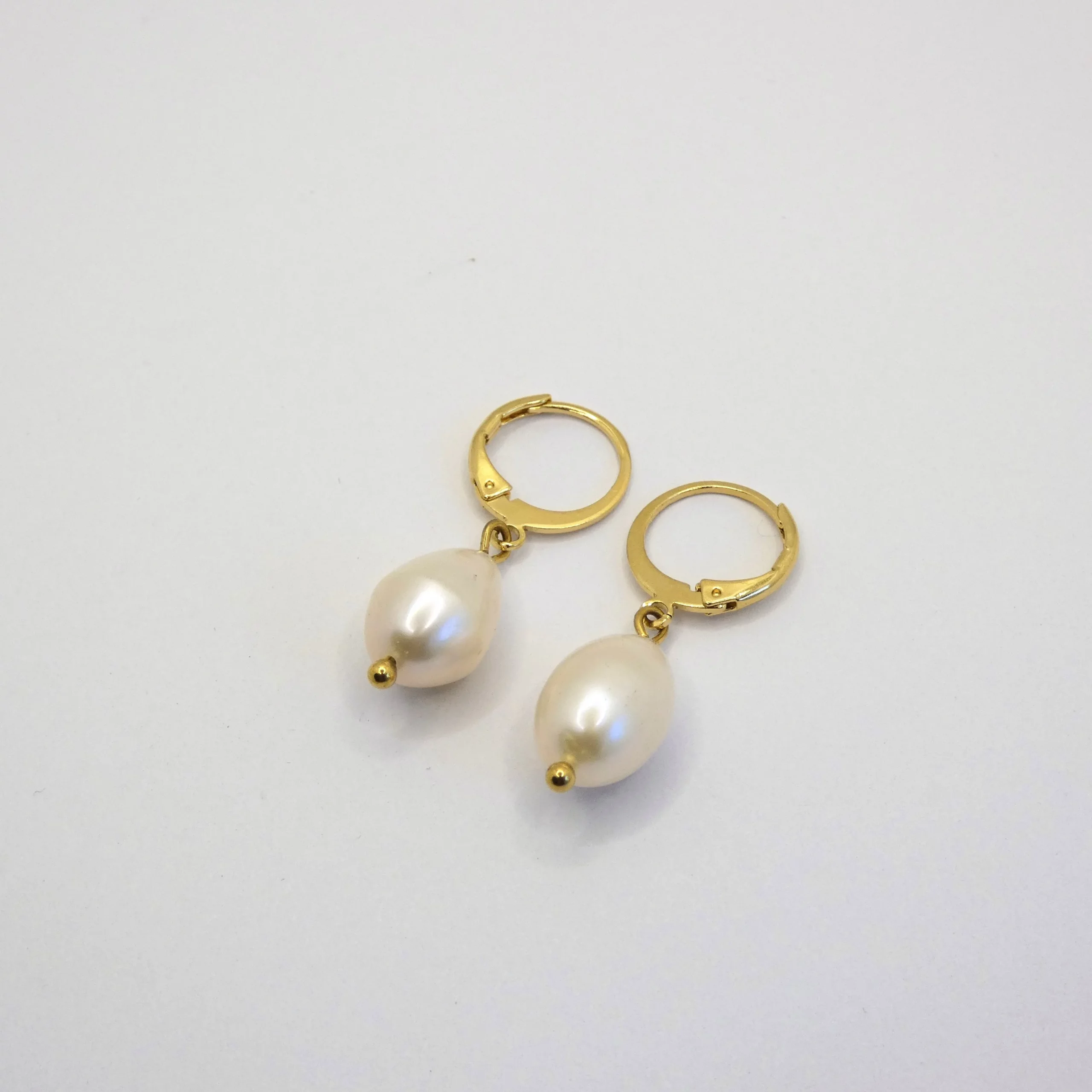 Boucles d’oreille créoles Arte Fact avec perles baroques naturelles. Fabriquées par Arte Fact dans son atelier.
